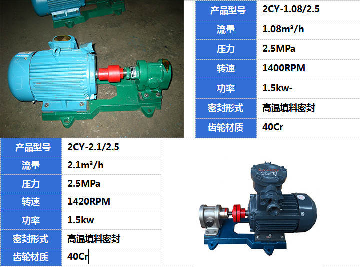 2CY齒輪泵特別適用於向高遠(yuǎn)方向輸送重油、機械油、燃油,以及不含固體顆粒、纖維的石油、化工產品等液態物質。